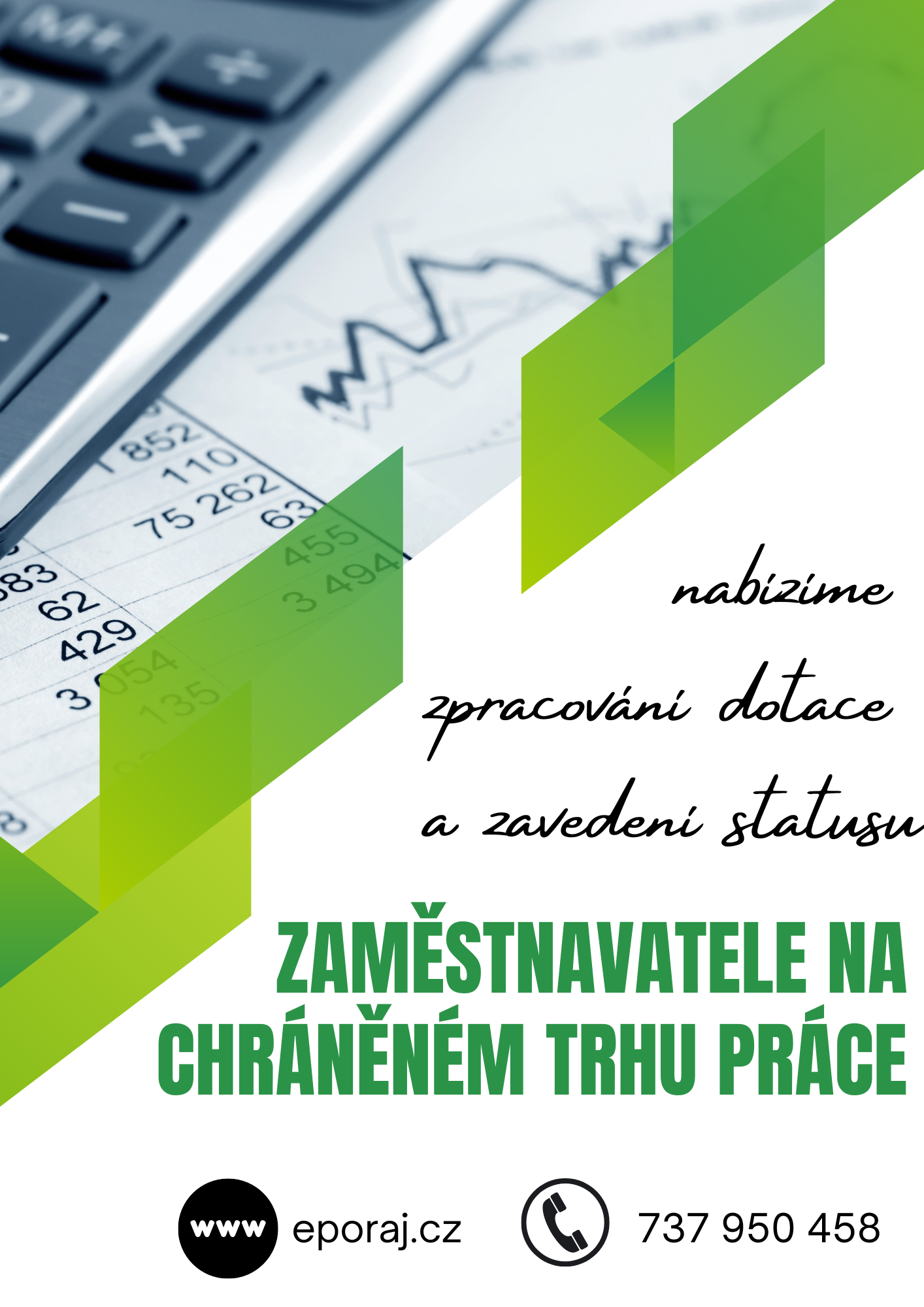 Zaměřujeme se též na zpracování projektů a následnou administrací v rámci vybraných dotačních programů. Provedeme Vás procesem k získání statusu zaměstnavatele na chráněném trhu práce (tzv. chráněná dílna) a zpracujeme čtvrtletní dotaci.